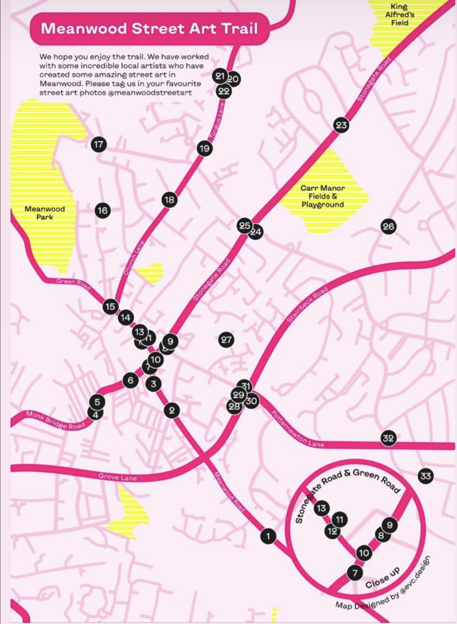 Join us on Monday 12 July for a circular walk, following at least some of the Meanwood Street Art Trail, with a half-time pit stop at the Myrtle Tavern. Meet outside the Wildcraft Bakery on Green Lane (opposite Waitrose) at the slightly earlier time of 7pm.